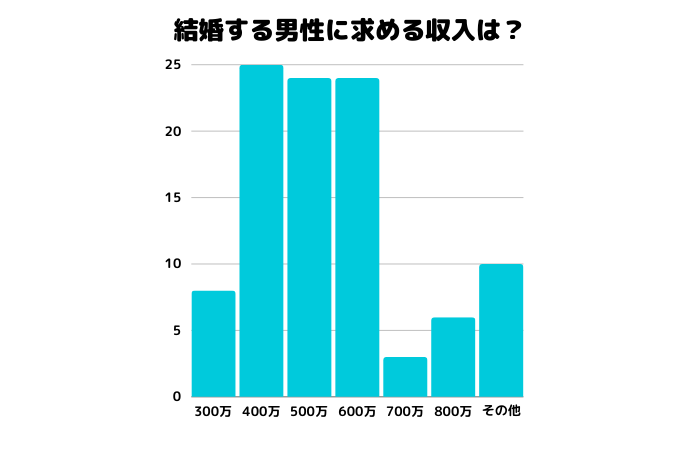 実際、100人に取った『結婚で男性に求める年収』のアンケートによると、400万~600万円が多い傾向がありました。